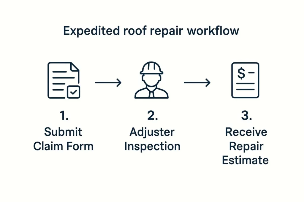 To give you a clear picture of how these pieces fit together, this graphic outlines the key stages of an expedited roof repair claim.